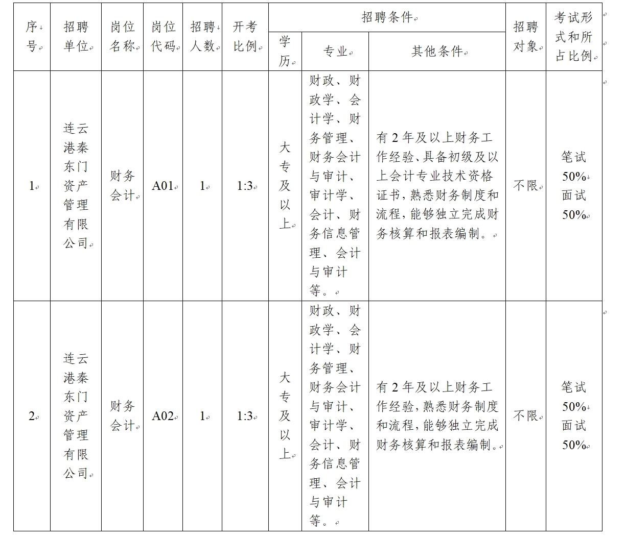 因工作需要,海州区板浦镇国有企业2024年面向社会公开招聘工作人员2名。现将有关事项公告如下: